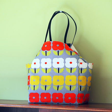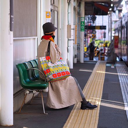 淡いグレーにポピーレッド、ホワイト、イエローの
