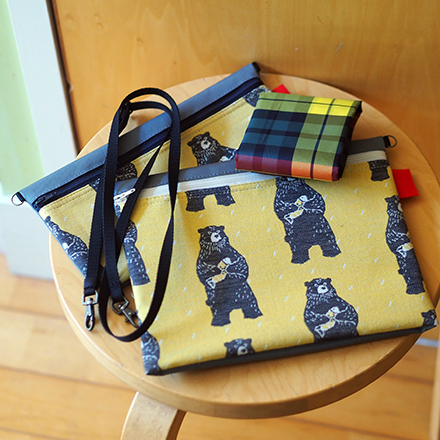 ○ecobag:スベスベとした薄手のチェックのナイロン生地。