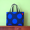 ネイビーに鮮やかなブルーの大きい水玉が大胆にデザインされています。